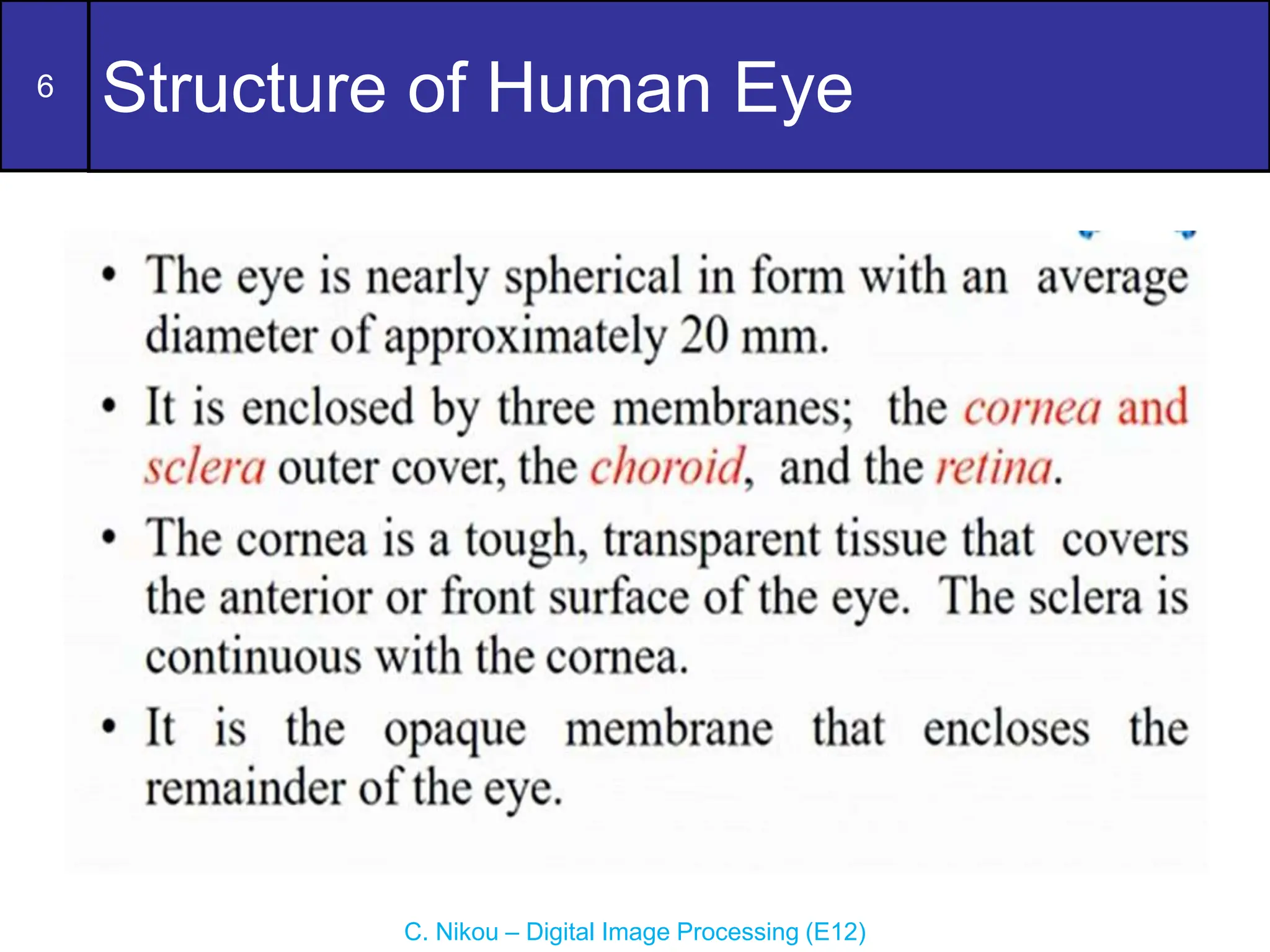 system, in combination with skilled examination, allows precise localization of neuropathological processes. Moreover, these principles guide effective diagnosis and management of neuro-ophthalmic disorders. The visual pathways perform the function of receiv-ing, relaying, and ultimately processing visual informa-tion. Learning Objectives. By the end of this section, you should be able to. 6.1.1 Describe the region of the electromagnetic spectrum that is perceived by our visual system, and the relative energy of photons at long and short wavelengths.; 6.1.2 Describe the major parts of the eye and their role in focusing light to create a clear image.; In this section, we will meet the range of the Aqueous humor is made by the ciliary body and flows along the posterior surface of the iris in the narrow posterior chamber. It then flows through the pupil and fills the anterior chamber. The scleral venous sinus (the old name is much more fun to say: the "canal of Schlemm") is a drainage system for the aqueous humor.